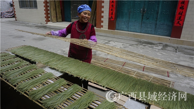 据了解,凌云县多地群众都种植红薯,并出产红薯粉,比如下甲镇水陆村平里屯,河洲村的汾洲、敢洋、那瓦、久洞以及泗城镇旦村村百坎、百合等村屯,每年生产上百万斤红薯粉。这些地方制作的红薯粉清明透亮、味香、细腻耐煮、嫩滑爽口,越来越受市场的青睐,产品供不应求,种红薯,制粉丝已成为凌云农民增收致富的一个新亮点。