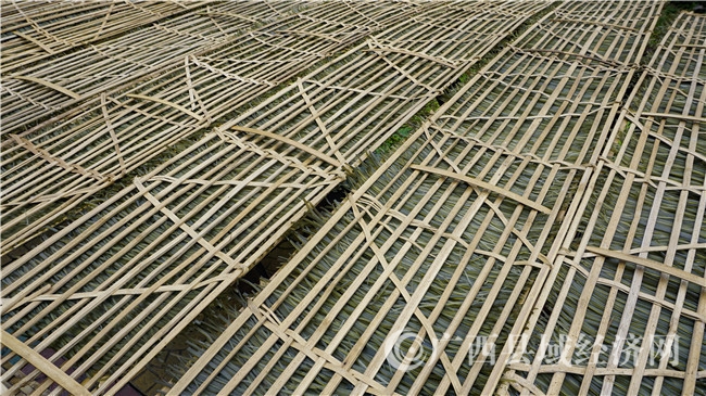 晾晒刚蒸制的红薯粉块