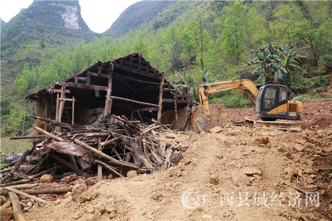 “我们全家已搬到文江移民安置区了,今天响应党委、政府的号召,把旧房拆除和宅基地复垦,我也很乐意。”3月29日,在环江毛南族自治县川山镇下荣村下翁屯拆旧试点现场,搬迁户谭文光说。
