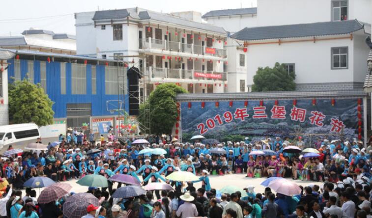 2019年天峨县三堡桐花节于4月7日至8日举行,游客除了可以欣赏漫山遍野怒放的桐花,还能领略丰富多采的蓝衣壮民俗文化魅力。