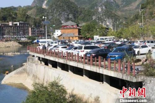 图为爆满的巴马景区停车场 钟欣 摄