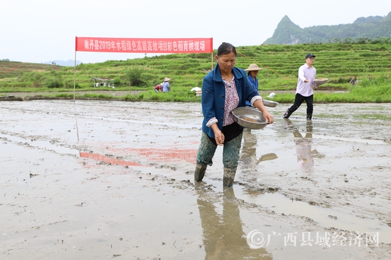 连日来,南丹县绿稻花海休闲农业(核心)示范区都能见到该县农业农村局农技人员的身影,他们正忙着指导示范区农民耙田、施肥、整秧田、催芽、播种,为今年南丹巴平梯田彩色稻田画创作做好准备。