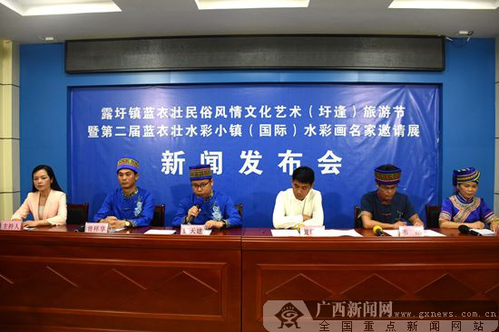 4月29日,2019年广西宾阳县露圩蓝衣壮民俗风情文化艺术(圩逢)旅游节暨第二届露圩蓝衣壮水彩小镇(国际)水彩画名家邀请展新闻发布会召开,宣布2019年露圩“圩逢节”将于5月12日在宾阳县露圩镇举行。