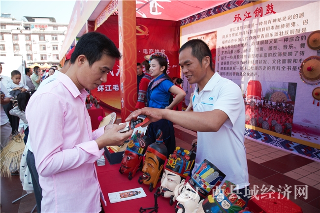 此次电商大集以节为媒、产业助推,通过“现场直播 电商”的方式,开展电视直播、现场展销、电商直销,实现线上线下同步销售。活动现场设立了30多个展位,展品涉及30余家合作社及种植户的红心香柚、环江“五香”食品及花竹帽、傩面具、铜鼓等民族手工艺品。