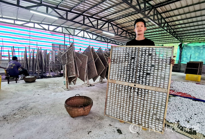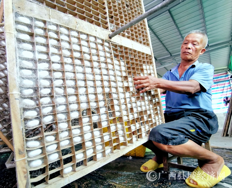 8月3日,11时,杨超厅展示他其中的一张蚕茧效果。黄安忠 杨进摄
