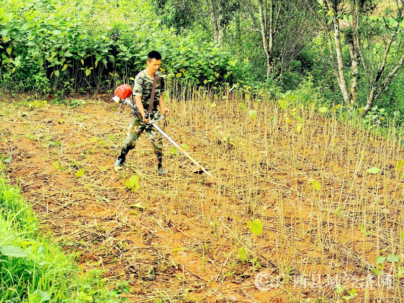 8月3日,16时许,杨超厅在桑地理清理剩下的枝干。黄安忠 杨进摄