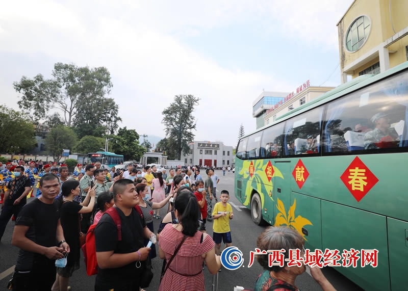 9月10日,在广西柳州市融安县,家人向新战士告别。(韦荣军 摄)