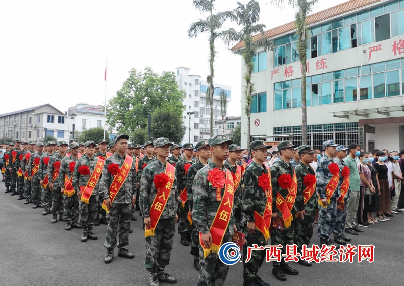 9月10日,在广西柳州市融安县人民武装部,新战士列队参加欢送仪式。(韦荣军 摄)