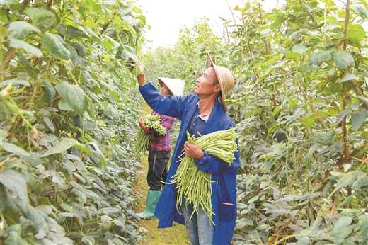 ②种植户抢抓季节釆摘豇豆。