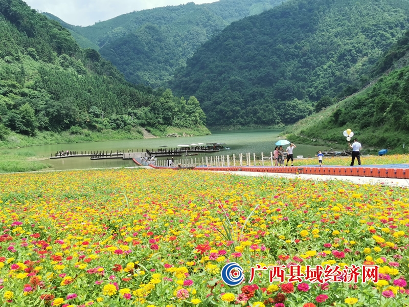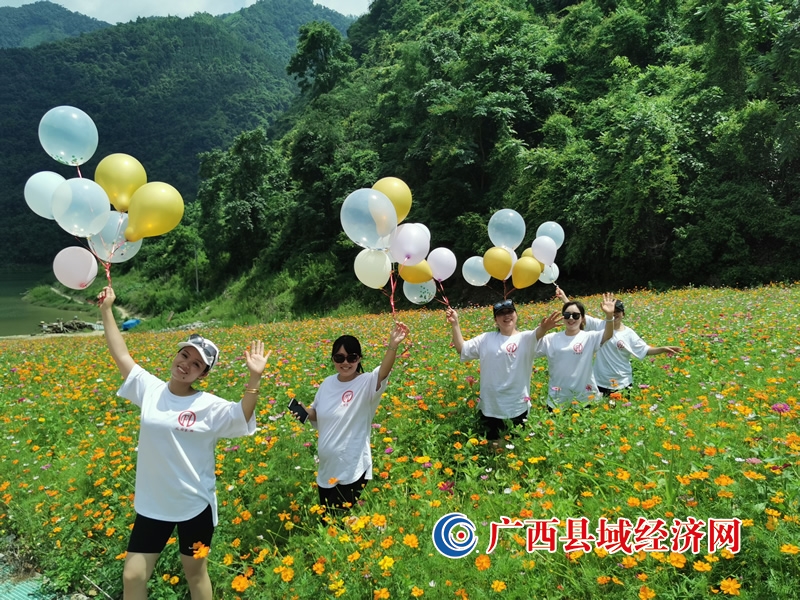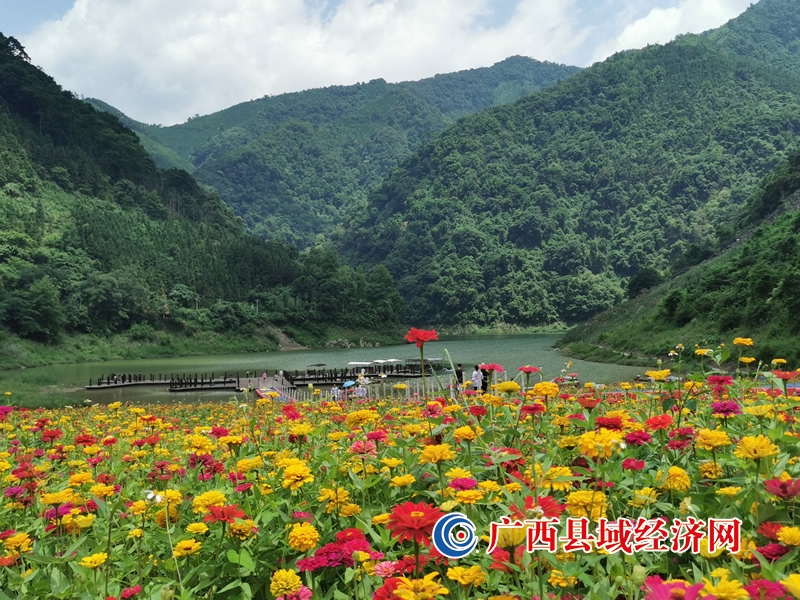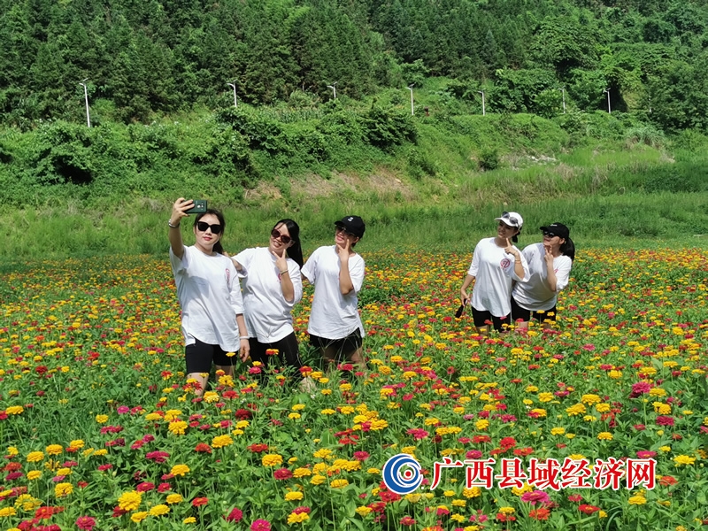 据了解,川洞河燕子湖景区是广西四星级的乡村旅游区,距天峨县城32公里,是集天坑、溶洞、峡谷、河流、原始森林等众多奇特景观为一体的生态景区。天峨县坚持“绿水青山就是金山银山”的生态理念,巧用当地生态资源,加大乡村旅游扶持力度,大力发展花海观光、水果采摘、农事体验等农业旅游项目,以“游”促农增收。此次打造的这片花海最佳观赏期从6月上旬至8月份。