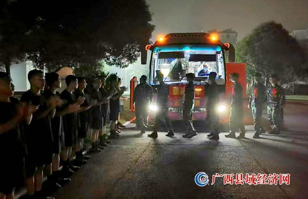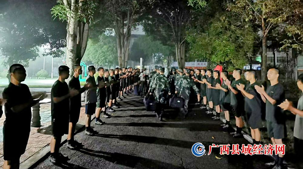 图二、9月16日凌晨,宁明县一批新兵背上行装迈步走向新的征程。 (韦雪香 摄)