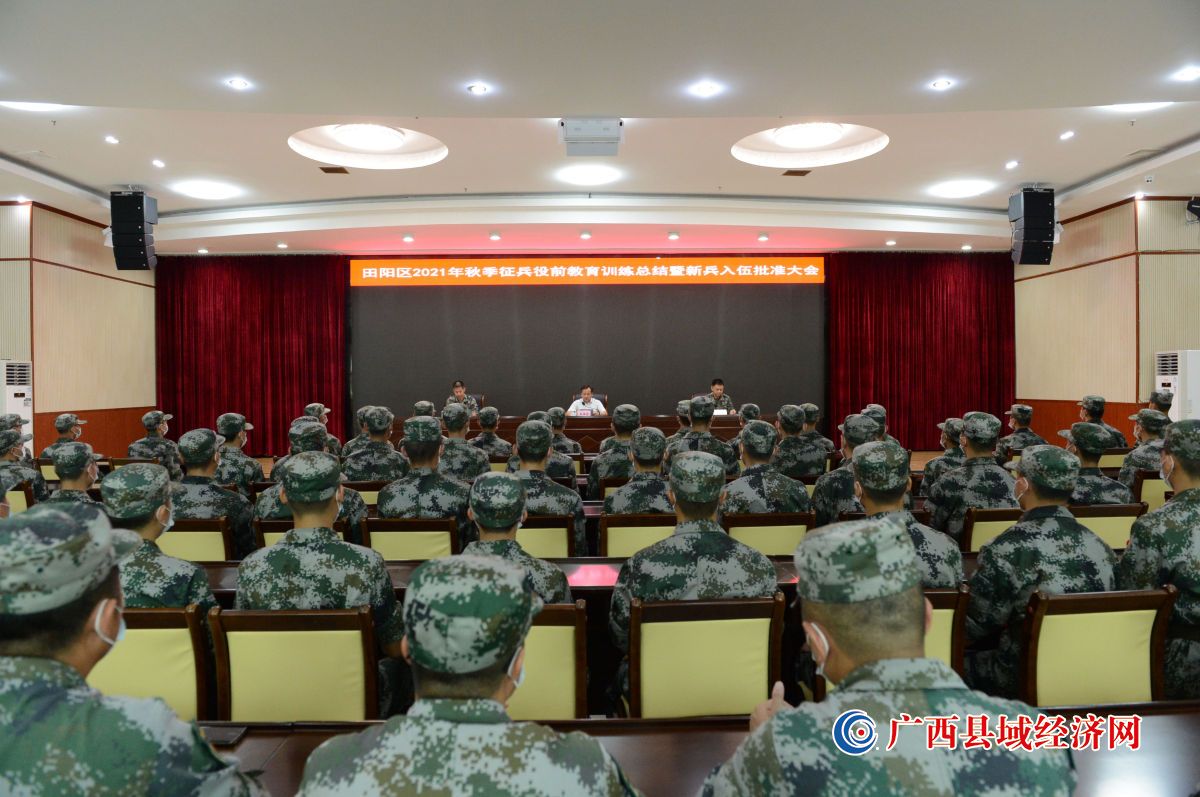 莘莘学子投笔从戎终不悔,参军报国驰骋疆场献青春。9月16日,田阳区召开2021年秋季征兵役前教育训练总结暨新兵入伍批准大会,进一步激发应征青年参军入伍的光荣感、责任感、使命感,展现全区党政军和广大人民群众对国防和军队建设的关系和支持,激发爱国热情。