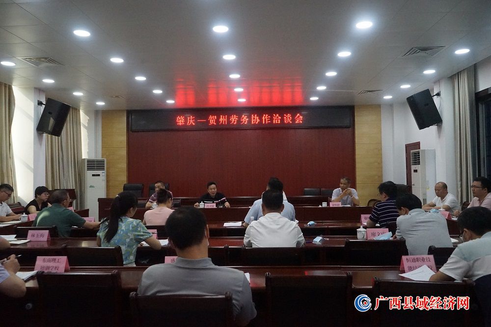 图为广东肇庆到结合帮扶市广西贺州开展劳务对接、探讨校企合作等事宜