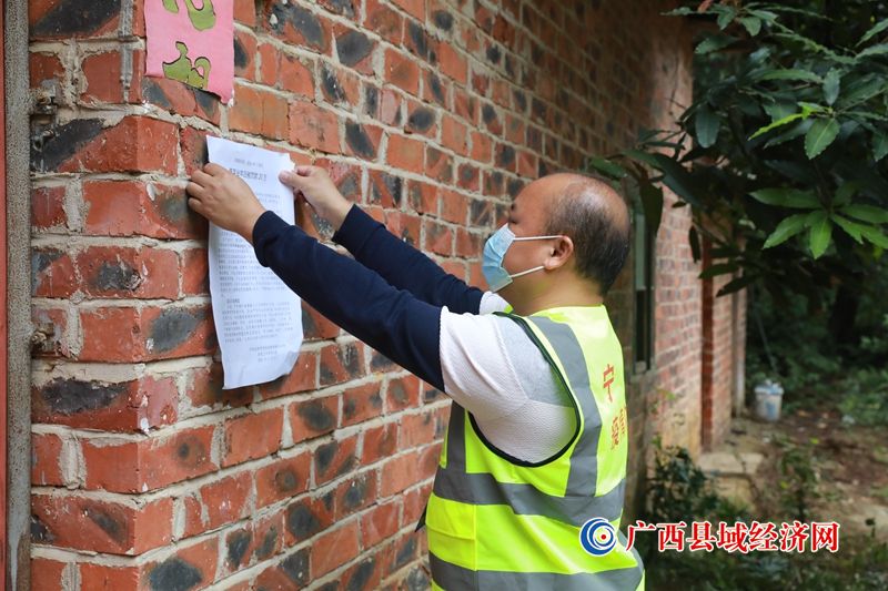 图为工作队员在抵边村屯张贴疫情防控宣传单。