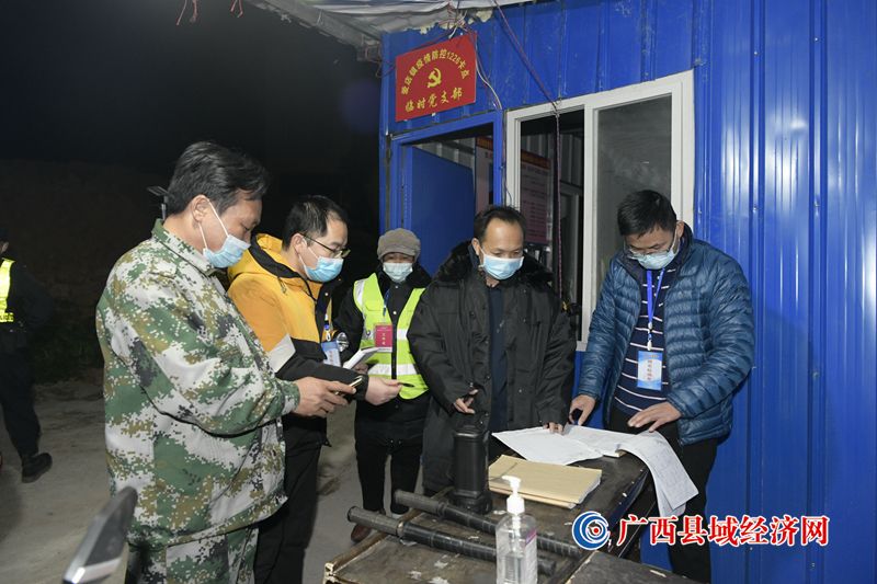 2021年12月1日晚宁明县委常委、县纪委书记、监委主任许建松在爱店镇1226界碑卡点夜间督查疫情防控工作