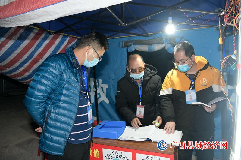 2021年11月12日晚宁明县纪检监察干部深入边境乡镇各疫情防控卡点督查值班人员履职情况