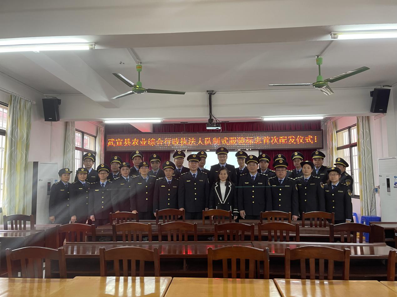 2022年1月7日上午,武宣县农业综合行政执法大队举行制式服装标志首次配发仪式,武宣县人民政府副县长梁璐参加配发仪式。
