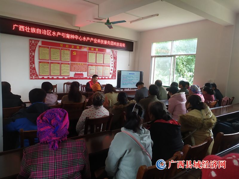 为扎实推进乡村振兴,助力种养殖业提质增效,指导养殖户生态种养。近日,自治区水产引育种中心乡村科技特派员一行4人联合宁明县农业农村局和宁明县安东乡乡村振兴驻村工作队,在宁明县东安乡东安社区居委会举办“新型实用种养技术”为主题的培训会。