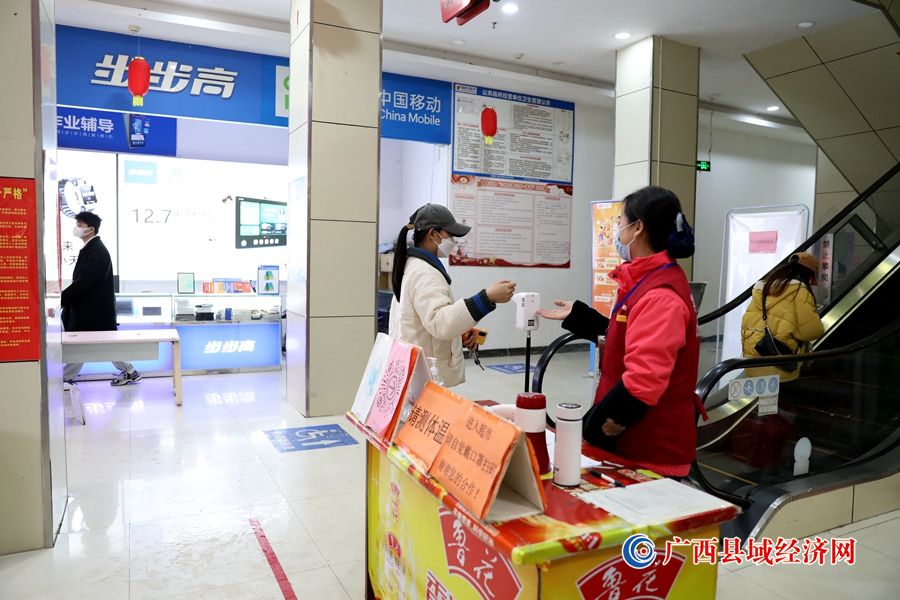 “进入超市请佩戴好口罩、测体温……”1月17日,在宁明县城中镇新西洋超市门口,大喇叭不间断的播放着疫情防控宣传要求,在入口处也张贴着疫情防控有关公告,设置有提示牌,并安排专门的监督员,要求群众进入市场必须佩戴口罩,配合测量体温,提供健康码,进行无接触式的体温检测。