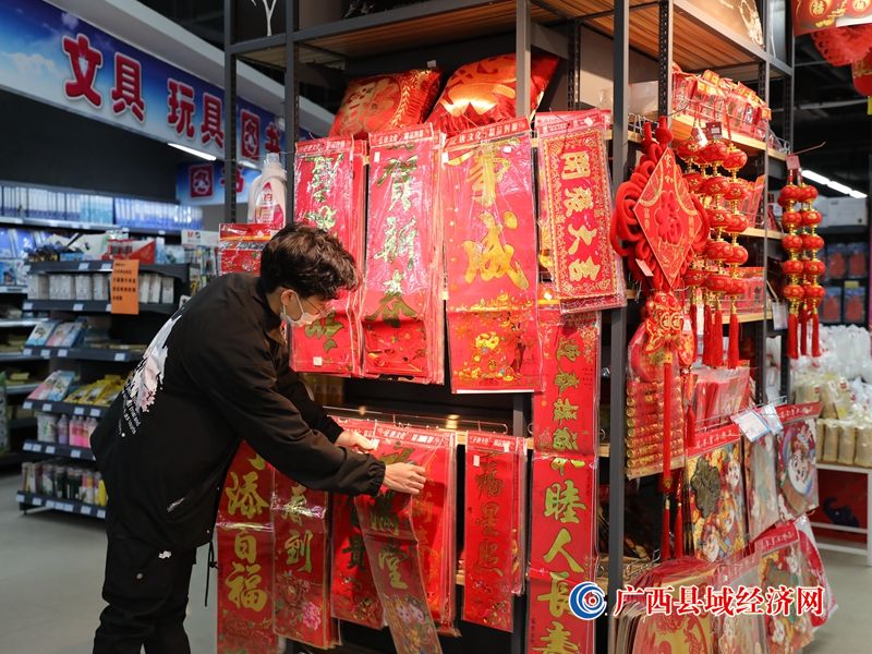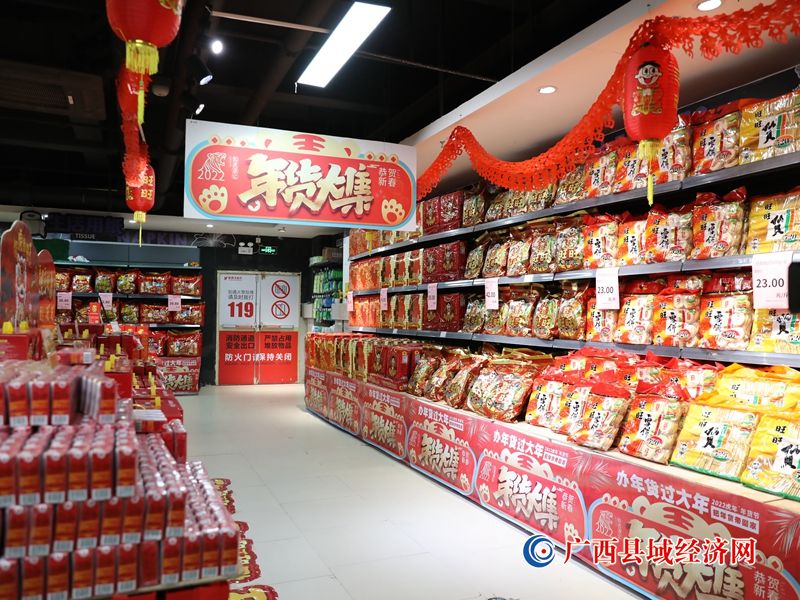当天,笔者走访的新西洋、联华、新宁等大型超市,均已开启“年货模式”,在最显眼位置设立了年货区,火红的灯笼、春联、生肖吉祥图等,让顾客提前感受到喜气洋洋的过年氛围。