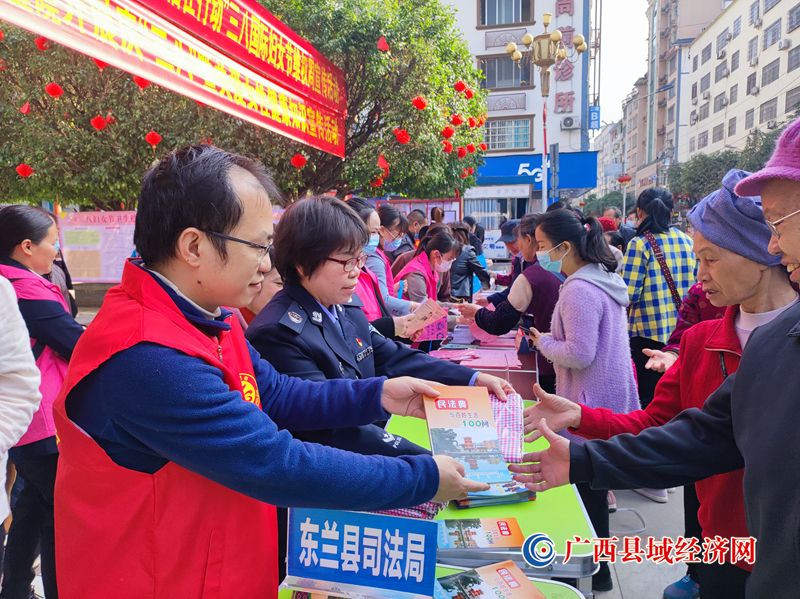 东兰县司法局工作人员利用民族节庆日给群众发放《民法典》等宣传资料