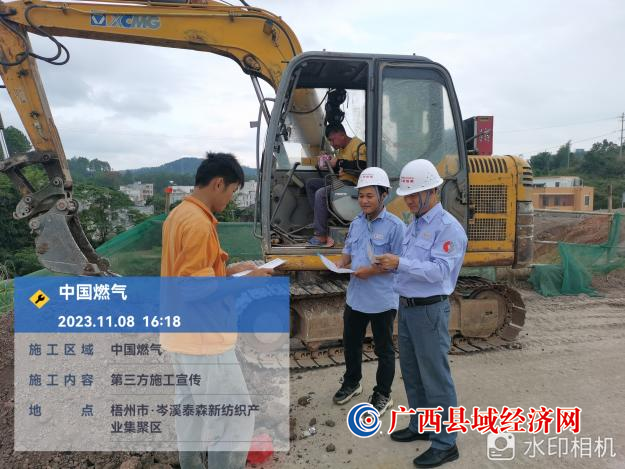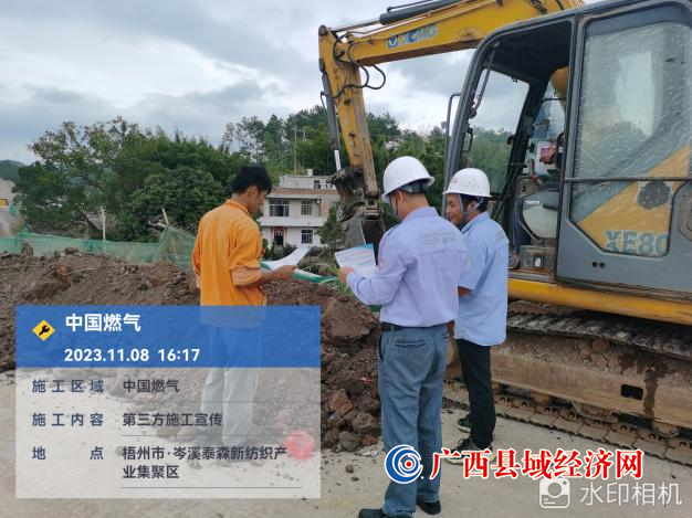 随着城乡经济建设步伐的不断加快,管道周边第三方施工数量逐年攀升,部分施工单位燃气法律法规意识淡薄,时常怀着侥幸心理,在不了解地下燃气管网分布的情况下,盲目开挖施工,造成燃气管线被损毁。为预防第三方施工破坏,确保燃气管网安全运行,岑溪中燃积极开展第三方施工燃气管道安全宣传。