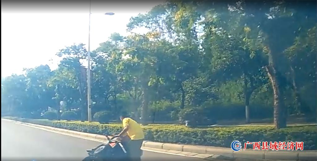 参与现场施救的百色市右江公路养护中心养路工人李祖钊说:“驾驶员是一名中年妇女,她被车压住了,用力挣扎又起不得身,因为电动车相当重,中年妇女起不来,我也着急,我下车以后,就迅速的往前把电动车抬起来,后面下车的两位同志也迅速往后疏导车辆”。