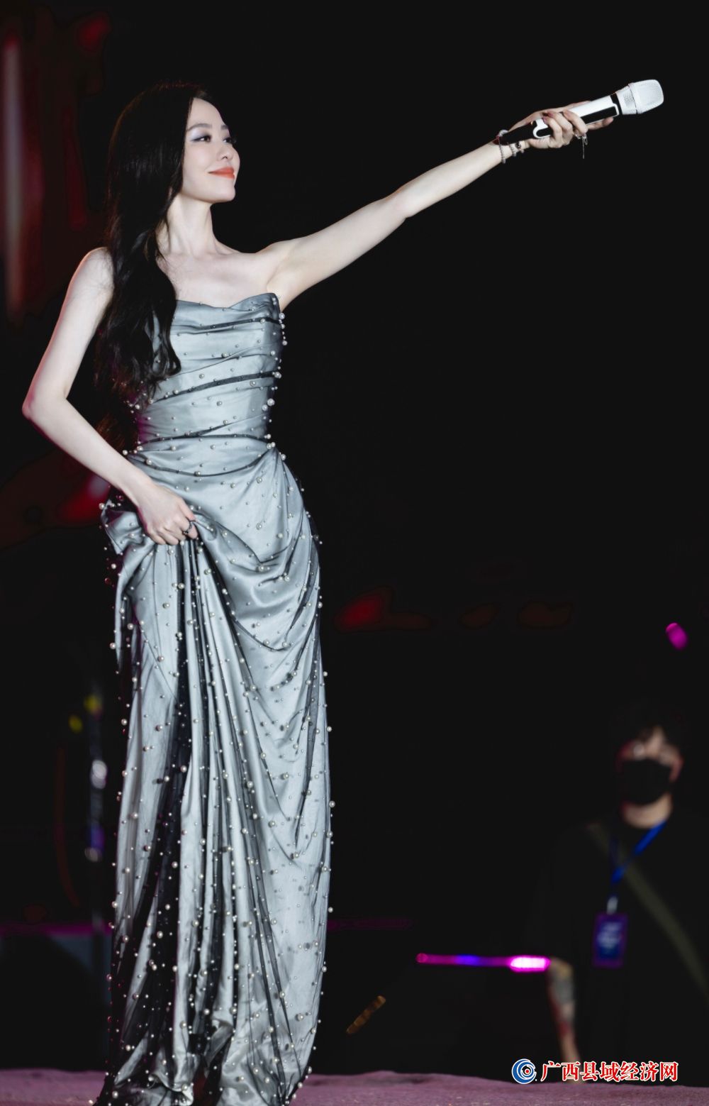 5月2日晚,广西首个户外大型mapping秀天幕下,张靓颖领衔的“星梦象州音乐秀”将活动推向高潮。
