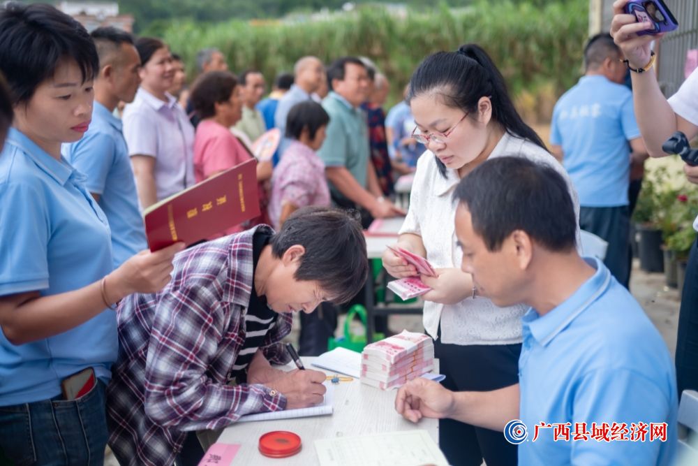 板銮村各屯股民代表领取本屯分红。李天一 摄
