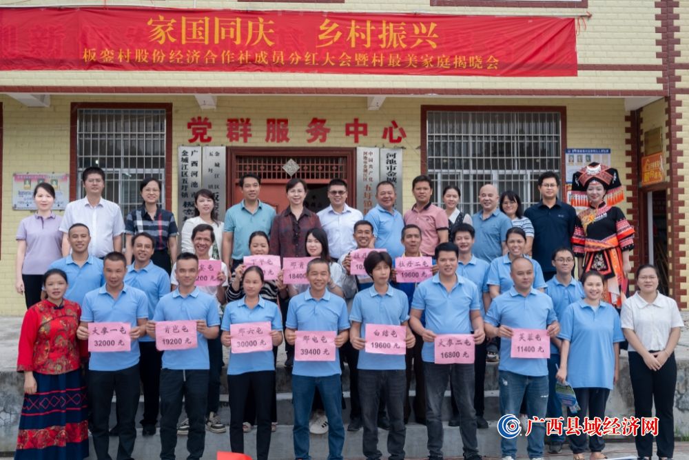 秋色染壮乡,丰收悦民心。9月29日,河池市金城江区五圩镇板銮村迎来了股份经济合作社成员分红大会暨最美家庭分享会。全村11个屯共1317名股民共分红26.34万元(含147户脱贫户)。村民们脸上洋溢着灿烂的笑容,共同分享集体经济发展带来的硕果。
