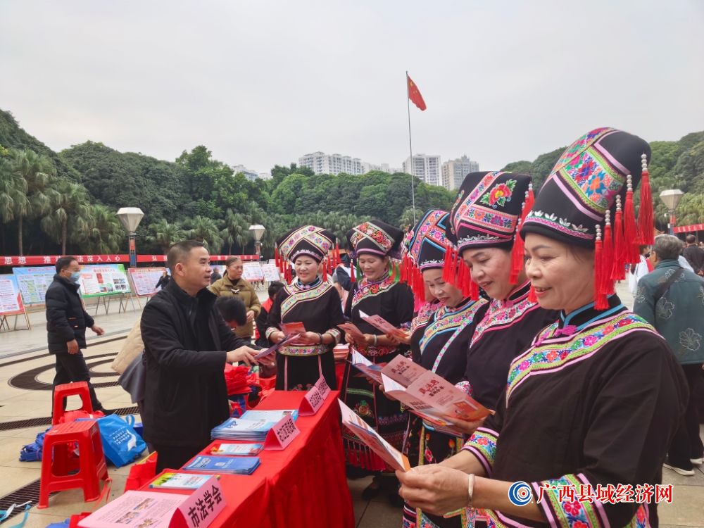 集中宣传环节中,右江区以群众喜闻乐见的形式传递法治力量,亮点纷呈。区司法局选送的《宪法宣传山歌传唱》节目,将宪法知识与地方民俗文化深度融合,用悠扬山歌演绎法治内涵,让宪法精神在潜移默化中浸润人心,赢得现场观众阵阵掌声。在法治宣传集市,右江区各参展单位通过设立宣传展板、搭建咨询台等方式,全方位开展普法宣传。区司法局主要领导带头靠前服务,与副局长及业务骨干一同在咨询台前,耐心倾听群众诉求,细致解答婚姻家庭、邻里纠纷、劳动合同、防范诈骗等热点法律问题,用专业的解读为群众排忧解难。“开展普法宣传,就是要让人民群众知法、懂法、守法,学会用法律武器保护自身合法权益,这是建设法治社会的坚实基础。”区司法局主要领导在发放宣传资料时的话语,道出了右江区普法工作的初心与使命。