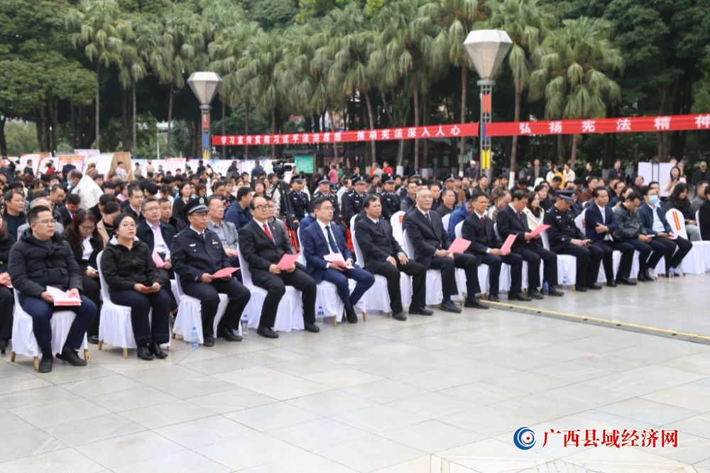 法治春风拂右江,宪法精神入人心。12月4日,2025年百色市“12·4”国家宪法日暨宪法宣传周活动启动仪式在百色市森林公园广场隆重举行。恰逢习近平法治思想提出五周年、全民普法40周年的重要节点,又是“八五”普法规划收官与“九五”普法规划谋划衔接的关键之年,右江区高度重视、精心部署,由区委常委、政法委书记黄铭带队,组织区司法局主要领导、区直相关单位负责人及村(社区)“法律明白人”代表等250余人组成右江区分团,积极参与此次法治宣传盛会,以实际行动践行法治初心,传递法治温度。
