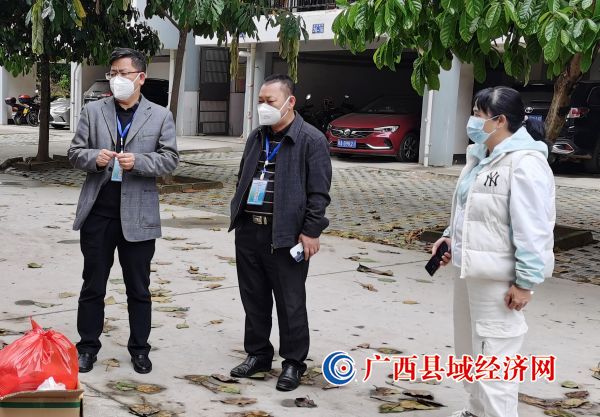 黄林(中)了解小区防疫情况(何胜 摄)