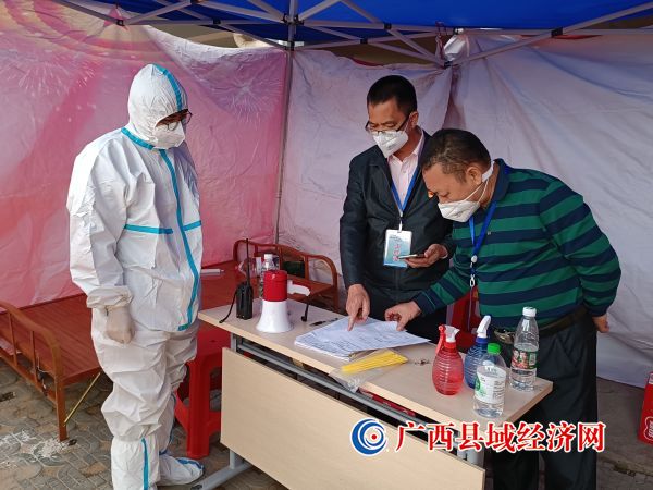 黄林(右)检查封控区人员出入登记(蒙锦进 摄)