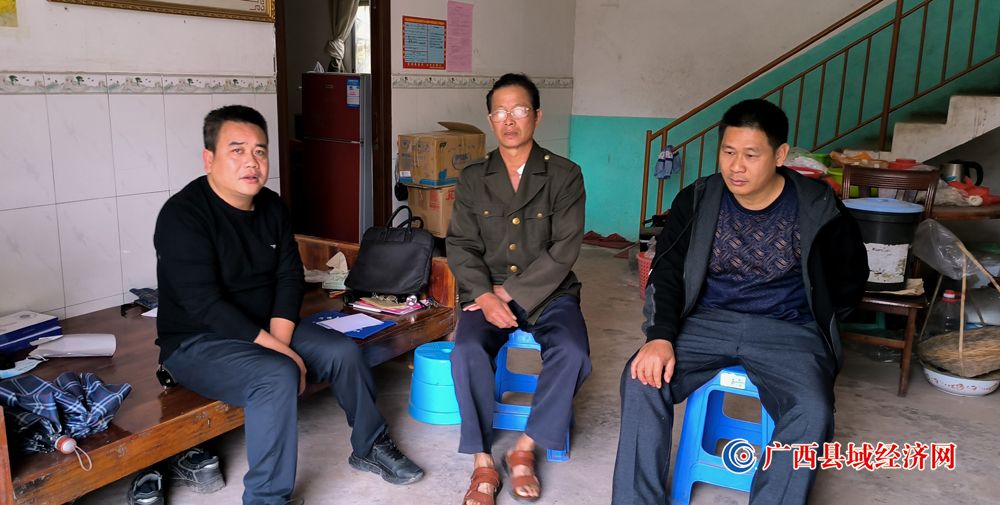 图三、2022年10月21日,黄圣文(左一)走访长桥村充龙屯禤国红户帮助协调解决大病住院救助报销问题。