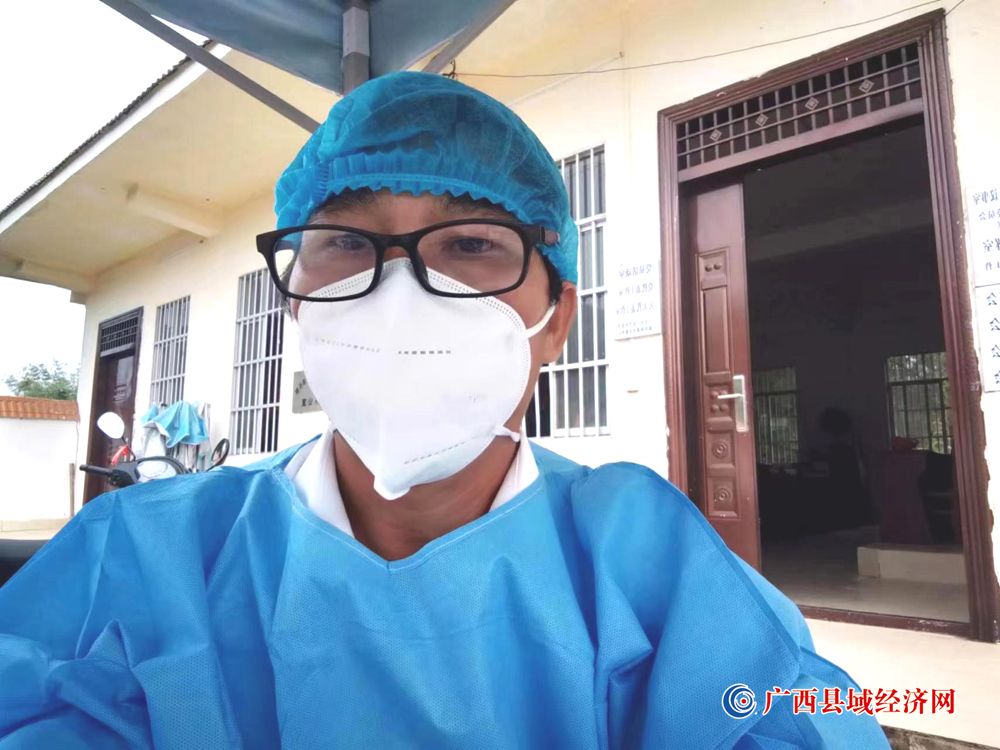图五、邱上其在疫情防控期间主动担任六丈屯核酸采样扫码员。 (周贻刚 摄)