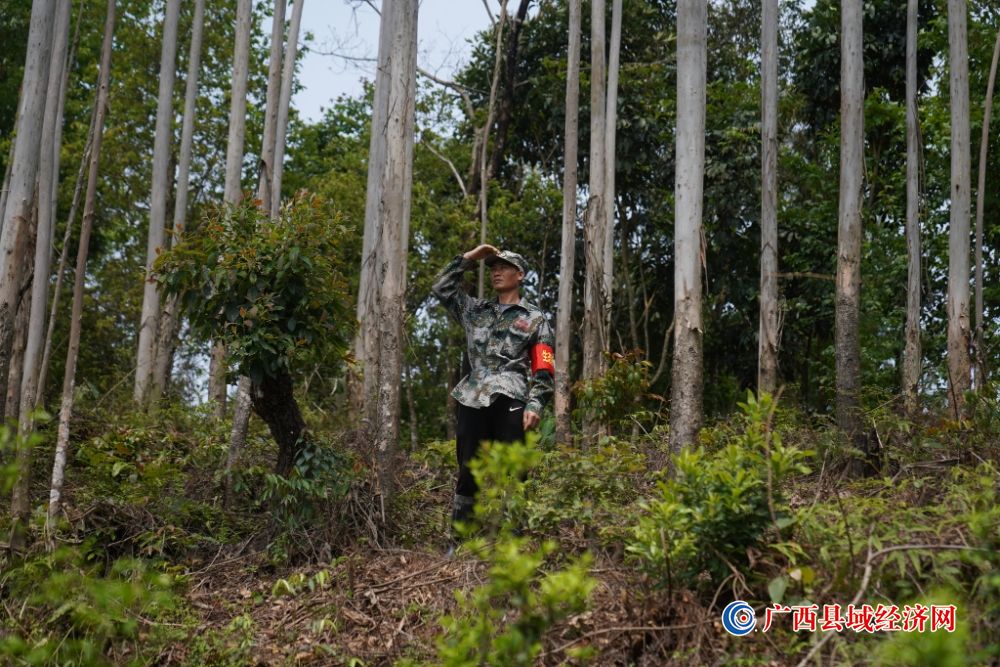 清晨,当村后蜿蜒的山径洒落第一缕阳光时,一个穿着迷彩服、背着镰刀和水壶的身影已踏上了巡山之路。八年来,日复一日,年复一年,只有眼前那片葱郁盎然的世界,才让他甘愿融入一片身心去守候与坚持,用青春换来了绿水青山,用坚守换来了生态安全……他就是德保县龙光乡大邦村陇同屯村民农必科,一个与山林结下不解之缘的生态护林员。