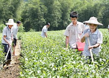 近日,平桂管理区水口镇水车村的茶农在为茶树施肥、除草、翻耕松土,为茶叶增产增收做准备。该管理区大力发展茶叶产业,努力促进村民脱贫致富。据统计,该管理区今年茶叶新种植面积1万多亩,茶农人均单项收入超3000元。