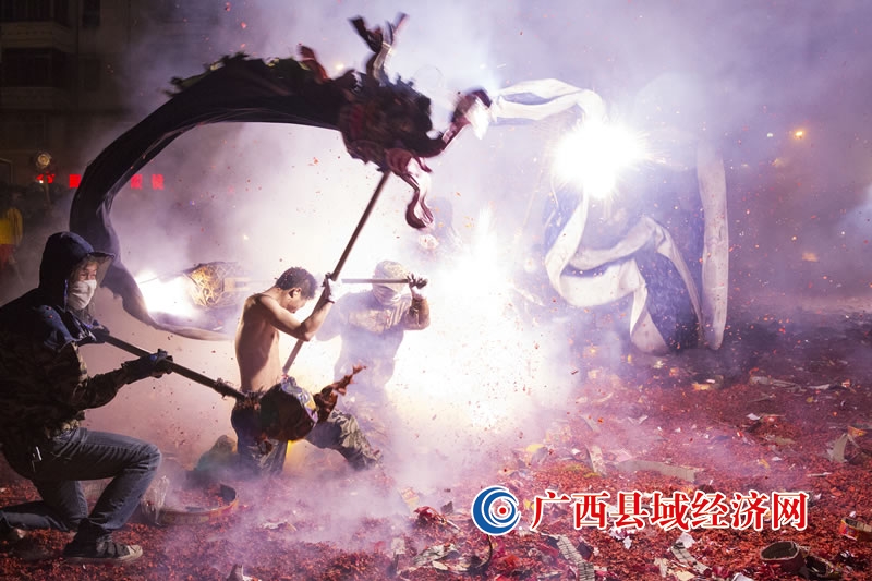 在此期间,早已等候“炸龙”的人们,看到“游龙”的到来,便迅速将一串串点燃的鞭炮抛向“游龙”。