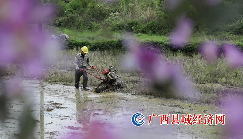 4月5日,广西融安县浮石镇泉头村村民在耙田。(覃庆和摄)