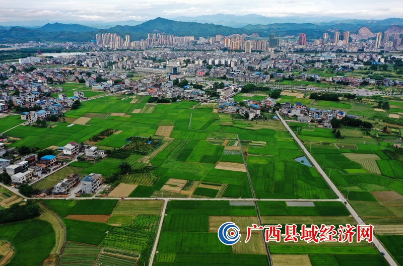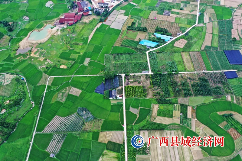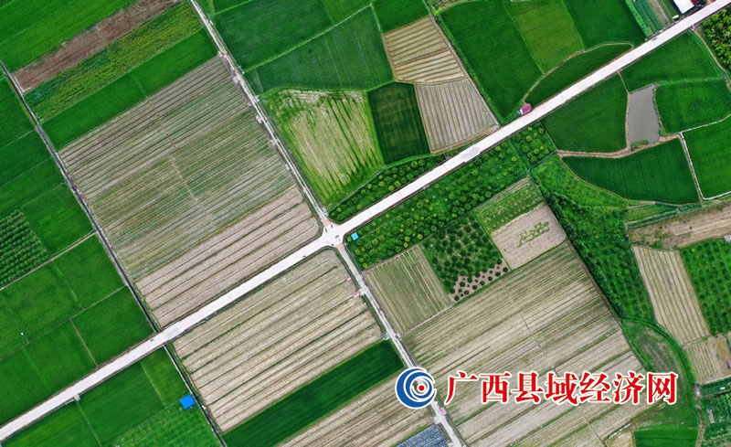 2021年6月21日,在广西柳州市融安县长安镇大巷村航拍的田间景色。(韦荣军 摄)