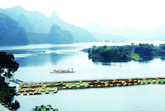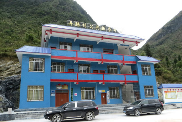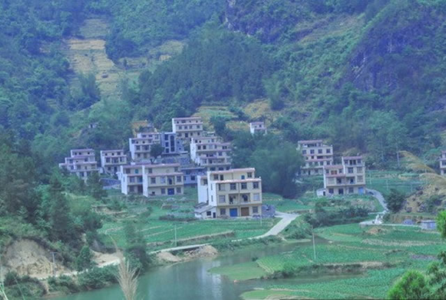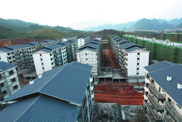 1990年,因岩滩水电站建设需要,大化县岩滩库区北景乡及周边约70户村民300多人,整体搬迁到大化镇古感村,组成了“龙着移民新村”。该村以打造“三业一村”(发展矿产加工业,引进劳动密集型产业,推广特色农业,构建富裕和谐新村)为载体,不断优化资源环境,积极调整产业结构,是全县新农村建设示范村。图为古感村龙着屯新貌。