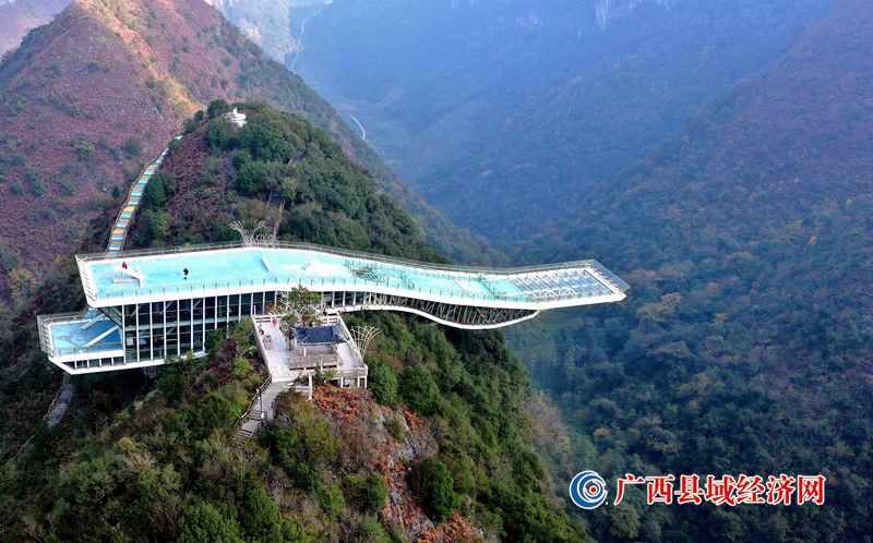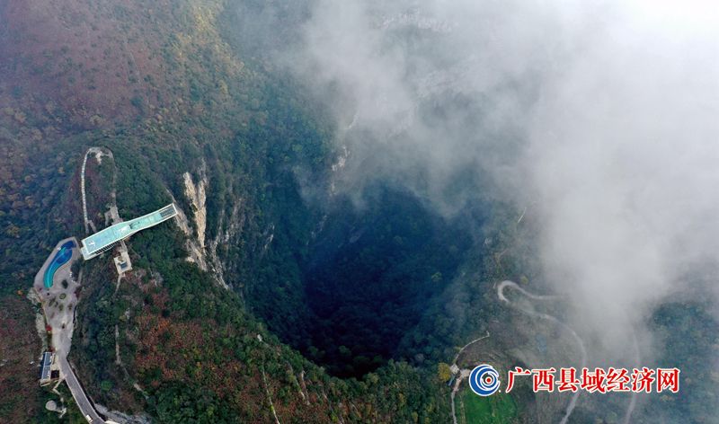 特别是在海拔1466米的大石围天坑西峰建有一座被誉为“云海天舟”的高空玻璃栈道悬挑长度达34米,距坑底悬空高度610米,状貌神龙吐舌伸向天坑,又似一艘飞舟遨游云海。(首席记者 高东风 摄影报道)