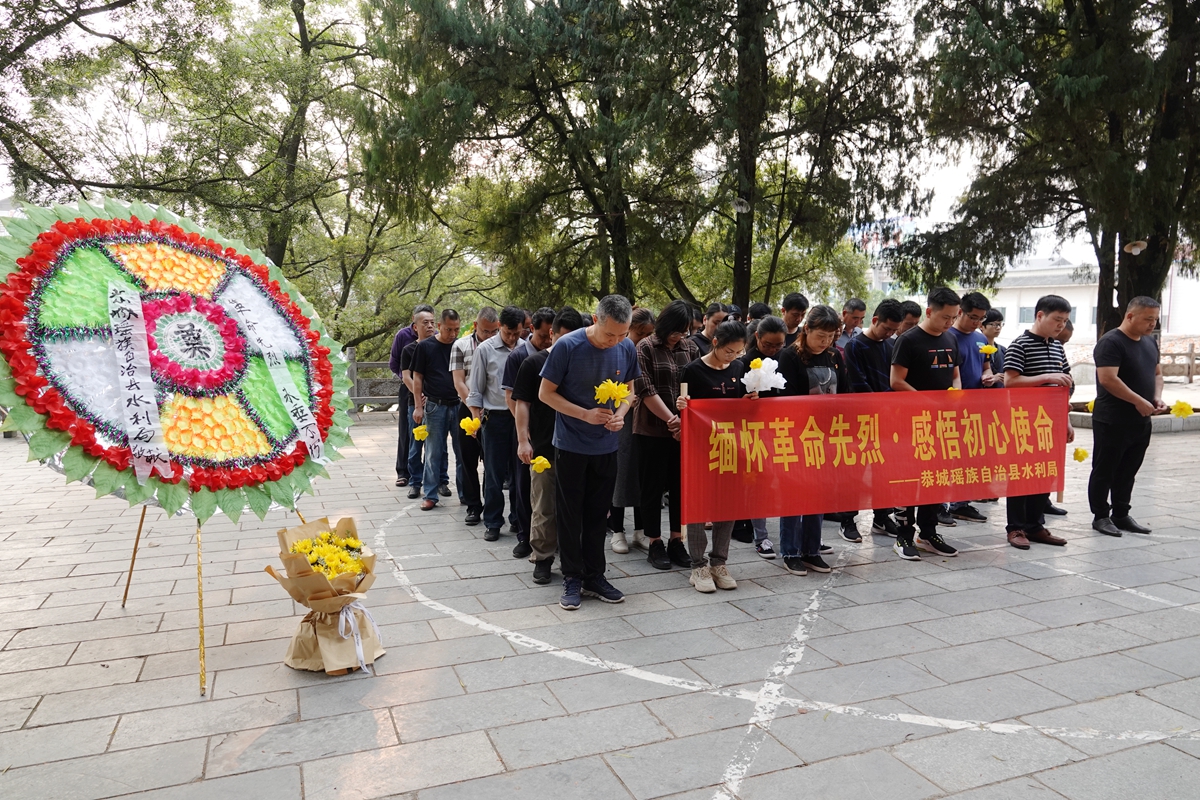 祭先烈,学党史,悟思想……4月1日,恭城瑶族自治县水利局党员干部来到烈士陵园,向革命烈士敬献花圈、自制纸花,并鞠躬、默哀,缅怀革命先烈的丰功伟绩,重温建党百年来的光辉历程,接受一次生动的爱国主义教育洗礼。