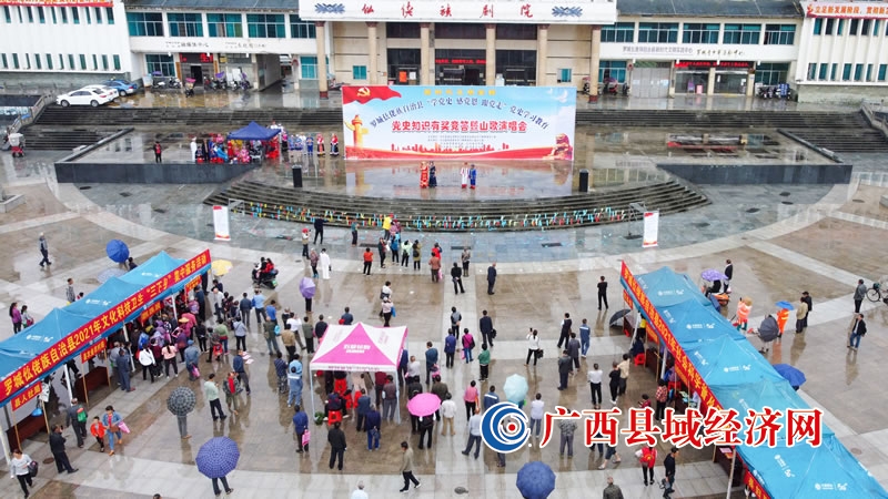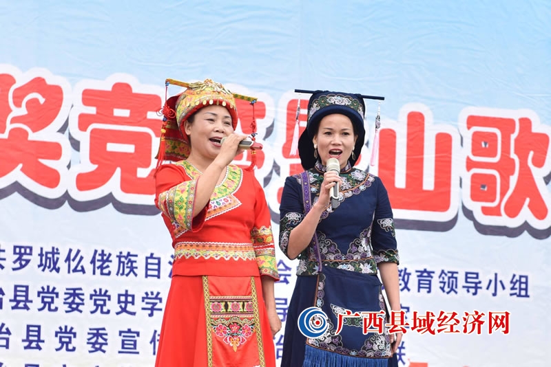 5月18日,罗城仫佬族自治县在民族文化广场,举行“学党史 感党恩 跟党走”党史知识有奖竞答暨山歌演唱会现场。