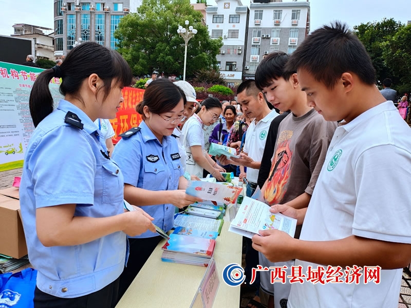 6月5日是世界环境日,为了让广大群众更加关注生态环境,把保护环境的行动化为自觉行为,当天,恭城瑶族自治县环保、司法、交通等多部门在恭城镇中心广场开展环境保护大宣传。图为,宣传部门在为市民开展环境保护宣传。