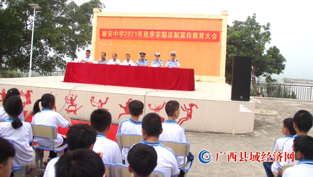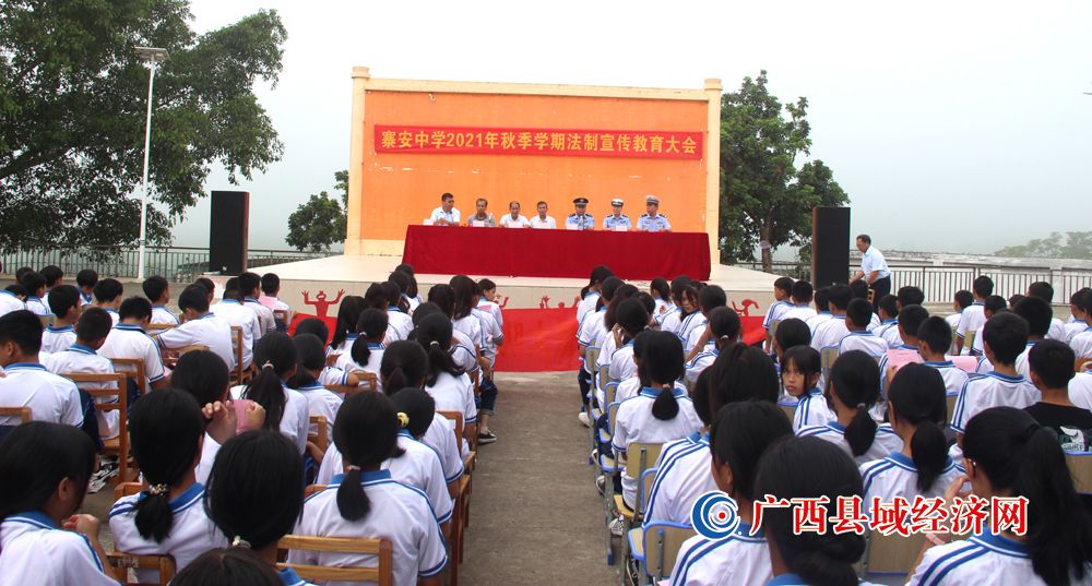 图一、9月10日,广西宁明县委政法委深入寨安乡寨安中学开展2021年秋季学期法制宣传教育大会。 (李白云 摄)