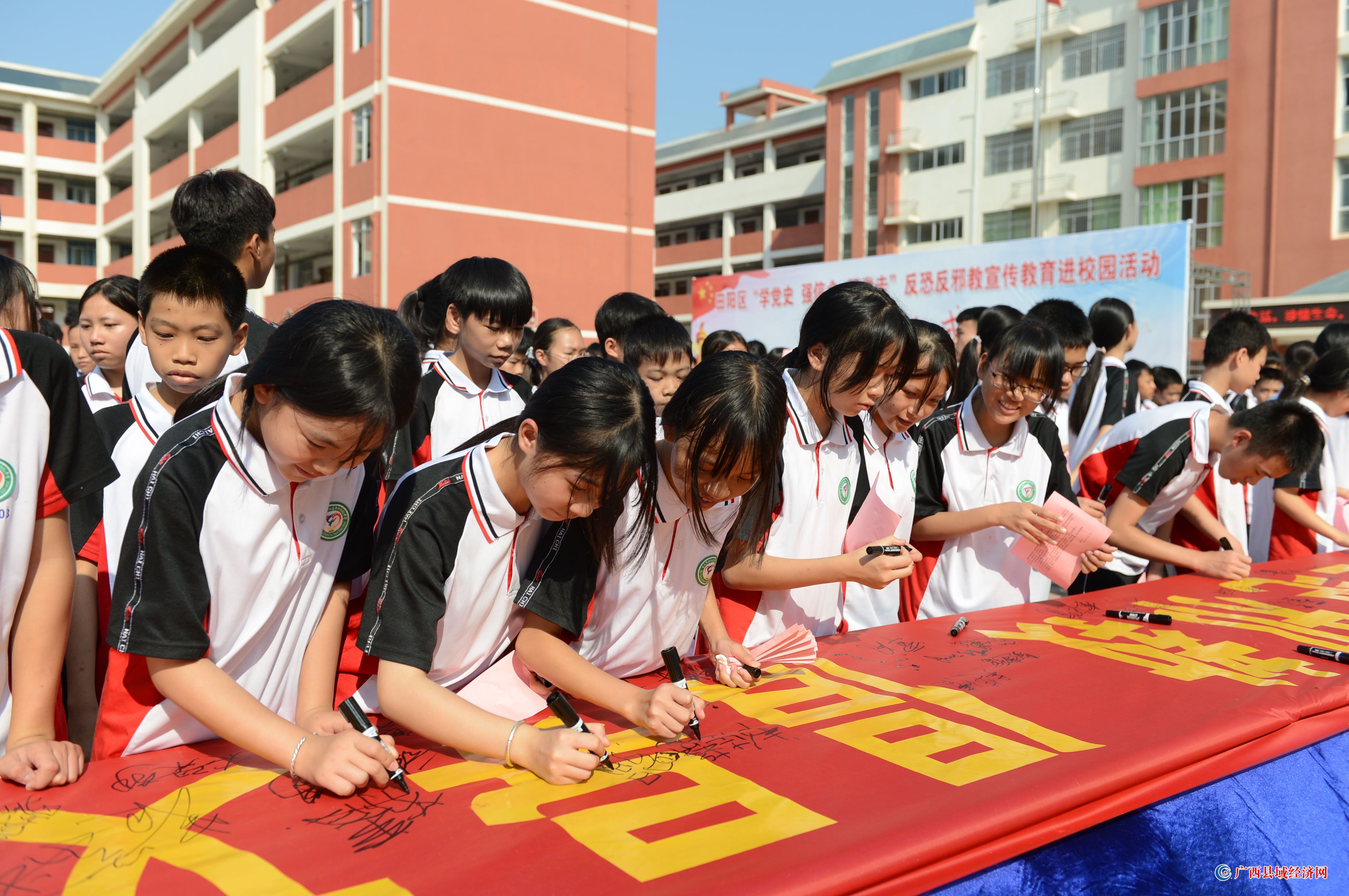宣读一份反邪教承诺书。市公安局田阳分局覃永宁副局长带领全体师生领读反邪教承诺书,引导全体师生自觉担负起倡导文明、反对邪教、共同维护社会稳定的责任,承诺自己和家人不参加任何邪教组织及活动,努力学习科学文化知识,积极学法、懂法,自觉抵制邪教。