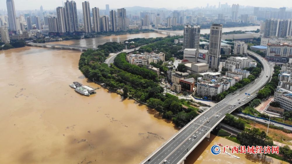 洪水中的郁江北大桥到邕江一桥段。莫卫华 摄