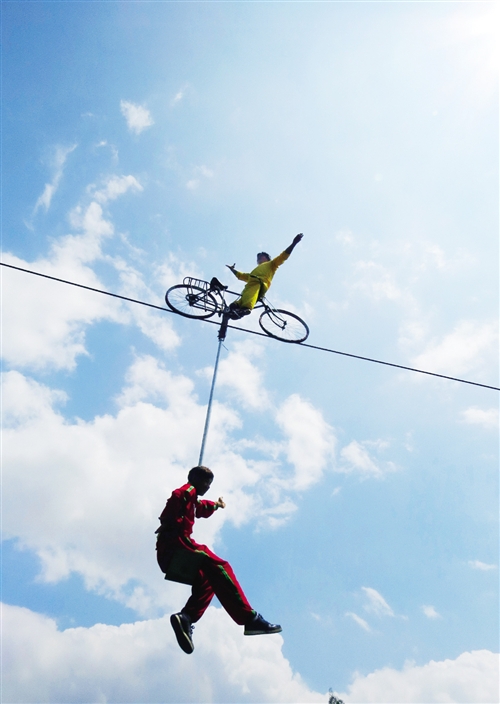 民间绝技高空车技表演 记者 赖有光 摄